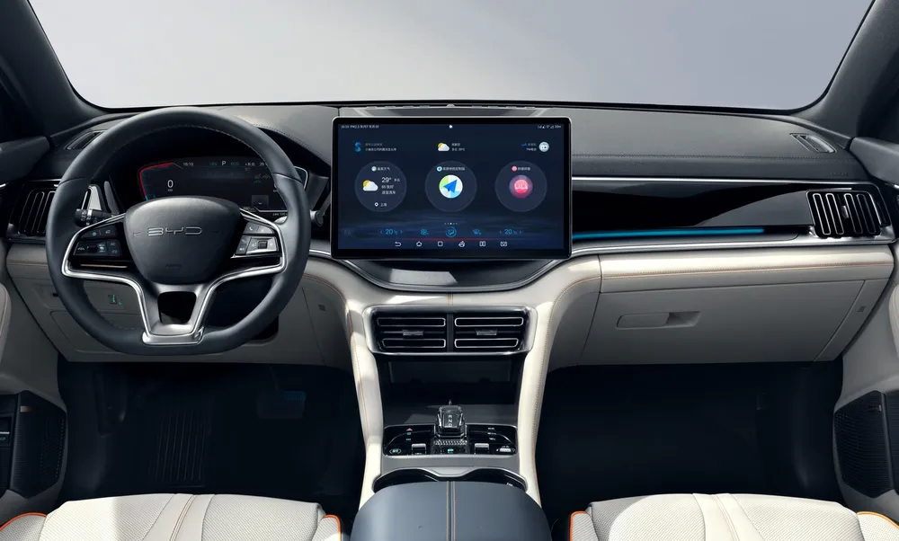 The BYD Song Plus is a midsize SUV that offers an advanced plug-in hybrid powertrain, combining an internal combustion engine with a high-performance electric motor. This configuration allows the vehicle to operate in electric-only mode for urban commutes, reducing emissions and fuel consumption, while providing the flexibility of a gasoline engine for long-distance travel.